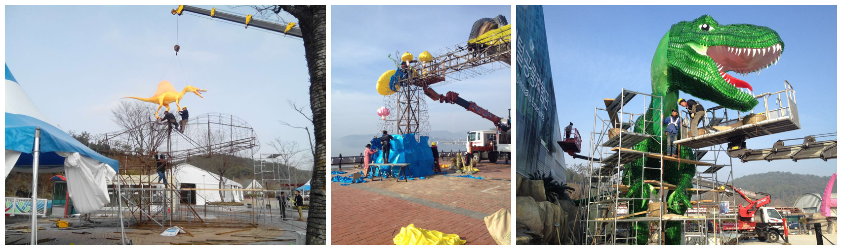 由自貢燈貿股份有限公司承制的“2016年慶南固城恐龍世界博覽會”目前已進入安裝調試階段,展會共有百余組大中型彩燈和仿真卡通恐龍,預計將于4月1日如期開幕。