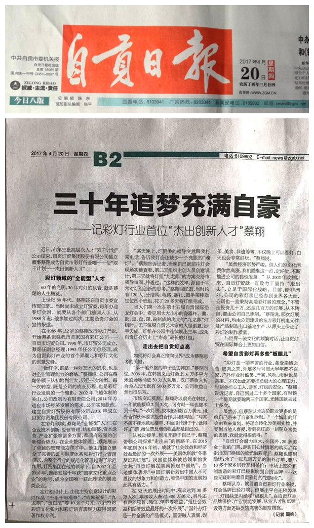 三十年追夢(mèng)充滿自豪 ——自貢彩燈行業(yè)首位“杰出創(chuàng)新人才”蔡翔