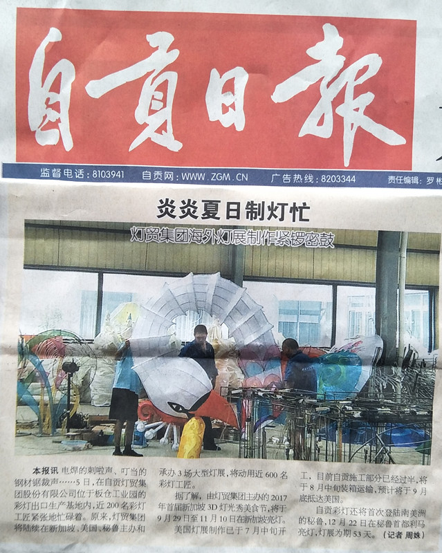 “日輪當(dāng)午凝不去,萬國如在洪爐中”盛夏的自貢驕陽似火。東方彩燈出口基地生產(chǎn)廠區(qū)內(nèi)一派繁忙,2017全球巡展燈組制作正緊鑼密鼓進行中。參加燈組制作的工人揮汗如雨:燒焊、接線、切割、裱糊......一組組、一個個生輝溢彩、斑斕絢麗的彩燈在勤勞智慧的彩燈藝人手中呈現(xiàn)。