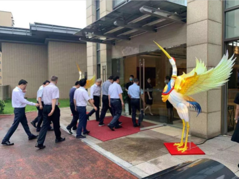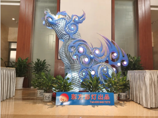 為彰顯自貢彩燈文化名片,市政府有關部門精選自貢燈貿集團股份有限公司自有品牌“東方彩燈”出品的兩組具有傳統(tǒng)彩燈藝術特色燈組—“瑞鶴”、“諦聽”呈放接待現(xiàn)場。