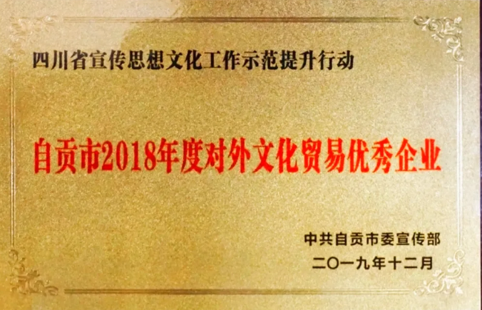 自貢燈貿(mào)集團股份有限公司擁有30年彩燈文化行業(yè)史,以其卓著的境外展出業(yè)績,榮獲中共自貢市委宣部頒發(fā)--四川省宣傳思想文化工作示范提升行動“自貢市2018年度對外文化貿(mào)易優(yōu)秀企業(yè)”稱號。