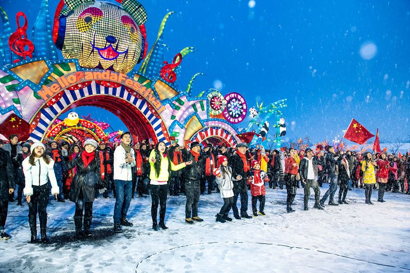 自貢燈貿(mào)集團承制的北美地區(qū)規(guī)模最大的彩燈盛會—“天下華燈”嘉年華(HelloPanda Festival)燈展場地于1月18日舉行了“點亮2022北京冬奧”文化日活動,中國駐紐約總領事黃屏大使和數(shù)千名當?shù)孛癖婟R聚這里,通過千人快閃、慶典晚會和游園賞燈祝福北京冬奧。這也是2022北京冬奧會和冬殘奧會在海外開展的首個大型公眾宣傳活動。