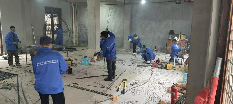 焊接也是一道十分重要的工序,碩大的花燈能夠穩(wěn)當(dāng)立起來,形成立體模樣,全靠焊接做骨架。而這個活計(jì)又十足費(fèi)工夫,在生產(chǎn)現(xiàn)場,焊工班的師傅戴著防護(hù)面罩,手下焊頭處火光四濺。做成一個花燈骨架,焊接點(diǎn)往往多達(dá)數(shù)百上千個。