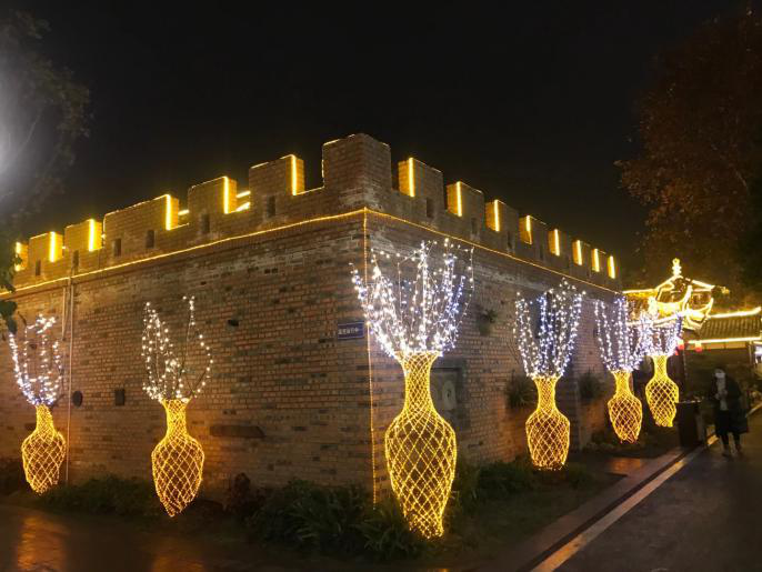 燈貿(mào)集團(tuán)承制的“吃耍成都—龍騰梵谷燈之夜”文旅消費新場景,以溫情祥瑞為主題,契合園區(qū)特色,依景布設(shè),用生動的彩燈藝術(shù)呈現(xiàn)了一臺清新脫俗的光影夜宴,為游人和食客創(chuàng)造了別樣的夜游體驗。