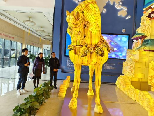 調(diào)研組一行參觀了東方彩燈(出口)基地,觀摩了燈貿(mào)集團(tuán)將自貢彩燈與唐三彩兩種非遺技藝的全新融合的“唐風(fēng)華韻”展品。集團(tuán)執(zhí)行總裁陶建軍向調(diào)研組一行介紹了燈貿(mào)集團(tuán)發(fā)展?fàn)顩r,以及公司全新彩燈產(chǎn)品。公司為促進(jìn)彩燈產(chǎn)業(yè)的創(chuàng)新性轉(zhuǎn)化和創(chuàng)造性發(fā)展,推出了文化+創(chuàng)意+科技全新彩燈產(chǎn)品,產(chǎn)品深度挖掘文化底蘊(yùn)動(dòng)線,變被動(dòng)式觀燈為主動(dòng)式沉浸、行浸觀燈,燈展的供給創(chuàng)新能力和消費(fèi)場景獲客能力得到了較大的提升。