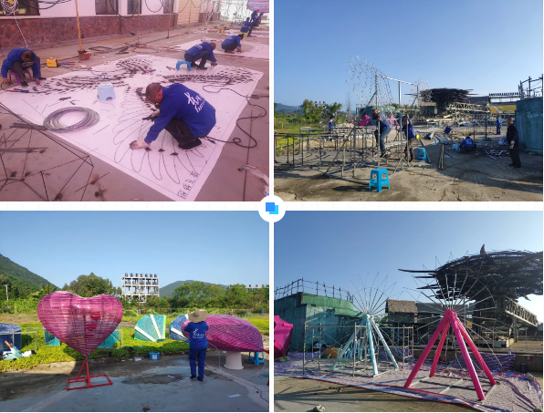 三亞“稻田奇妙夜”光影展預計于12月下旬開幕,目前燈組制作正在三亞緊鑼密鼓進行中,近百名來自東方彩燈的匠人以嚴瑾認真的工作態(tài)度,精湛的技藝,嚴格按照工程設計和施工圖紙精心制作,精細施工。