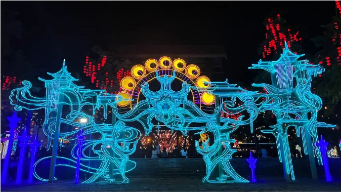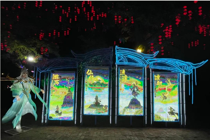 本次燈展再掀“尋蹤仙文化之旅”風潮。開封萬歲山·大宋武俠城內,游人如織,全新仙俠場景,為諸位仙友打造出沉浸式仙俠文化彩燈光影盛宴,通過瀟灑肆意的仙俠世界與傳統(tǒng)彩燈文化多維度結合的方式,以全新的模式詮釋中國傳統(tǒng)文化的璀璨魅力,解鎖江湖游玩的不同體驗。